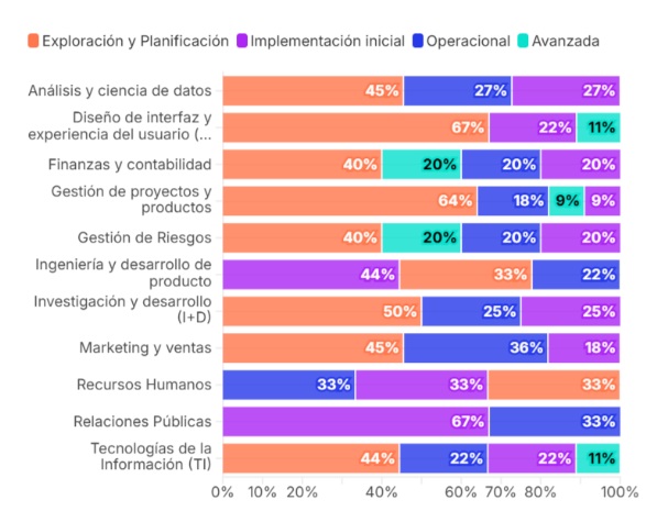 Comparto esta gráfica que me pareció muy interesante porque muestra las distintas etapas del ciclo de adopción de la IA en México: